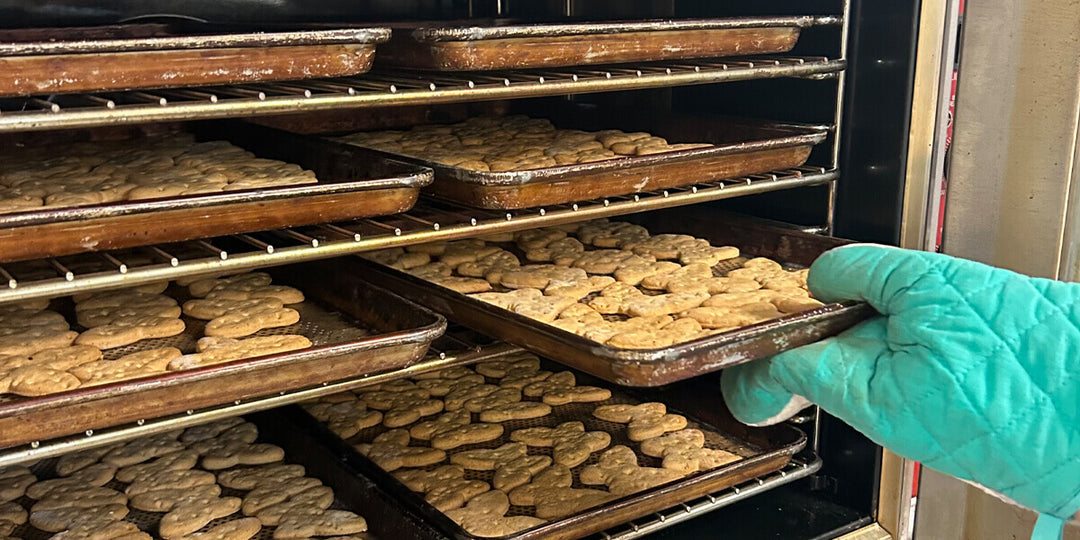 Our hand-cut baked treats are a labor of love. Each treat is mixed by hand, rolled out, and then shaped with cookie cutters. This traditional approach ensures that every treat is as unique and special as the pets who enjoy them.